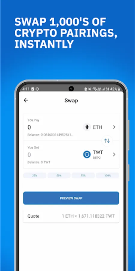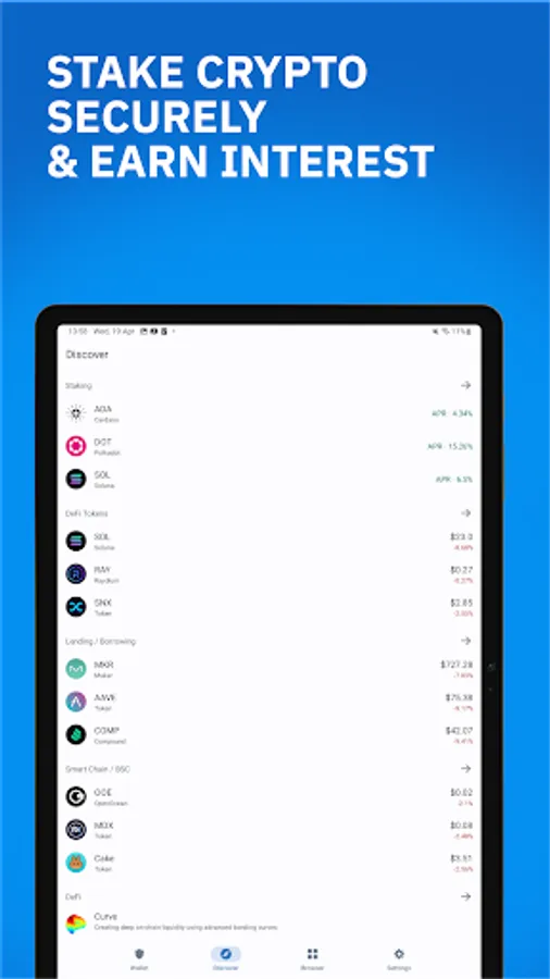Buy & Sell Bitcoin and cryptocurrencies via 3rd party fiat payment processors as well as swap and stake cryptocurrency securely – all without leaving the app.