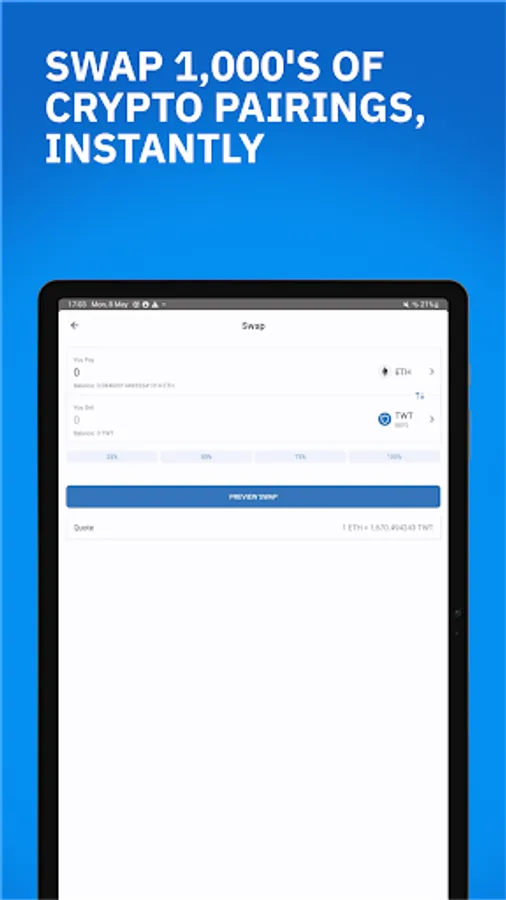Trust Wallet supports 8+ million digital assets, non-fungible tokens (NFTs), 70+ blockchains, and allows you to connect safely to thousands of Web3 dApps.