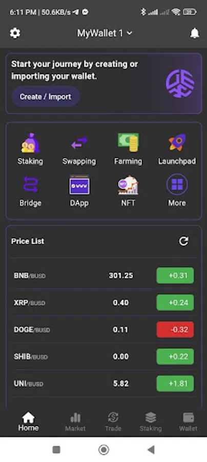 DexWallet is a ecosystem of decentralized world. DexWallet is providing decentralized Wallet, Staking, NFT's, in-app marketplace. User can trade their assets through our decenralized spot exchange securely. Also we will provide pancakesWap and UniSwap router supports for swapping.