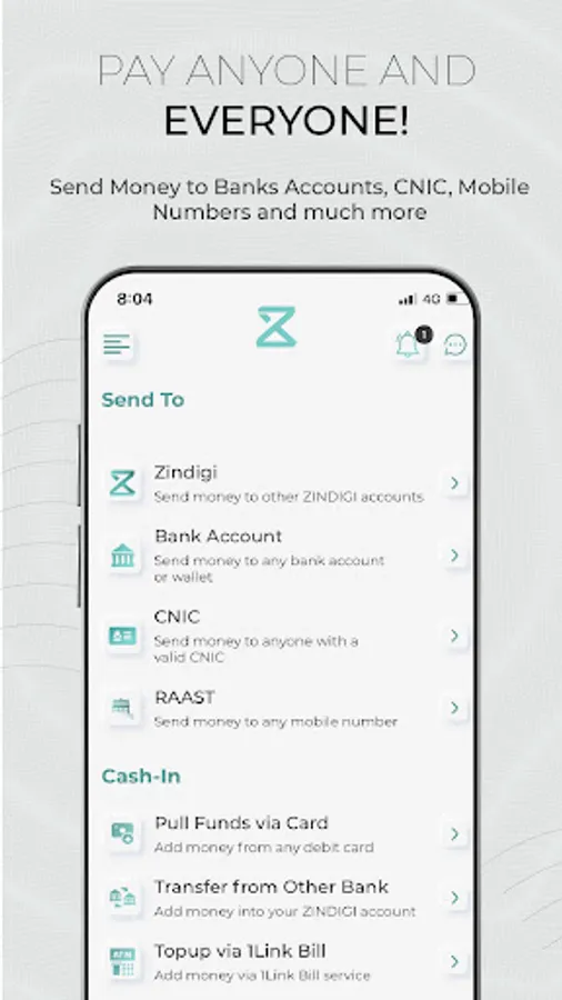 Send and receive money from anyone and everyone through bank transfers, CNIC transfers or on your mobile number. Send personalized gifts or send requests for money to friends and family.