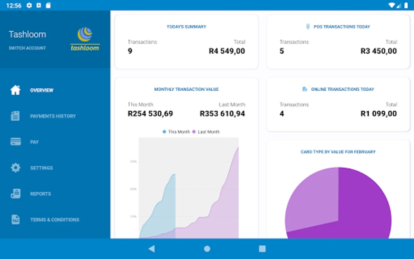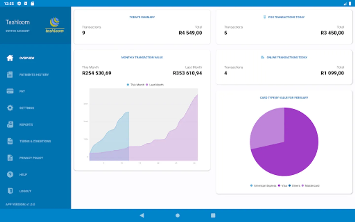 • Place widgets on your home screen for a quick view of your daily and monthly processing volumes