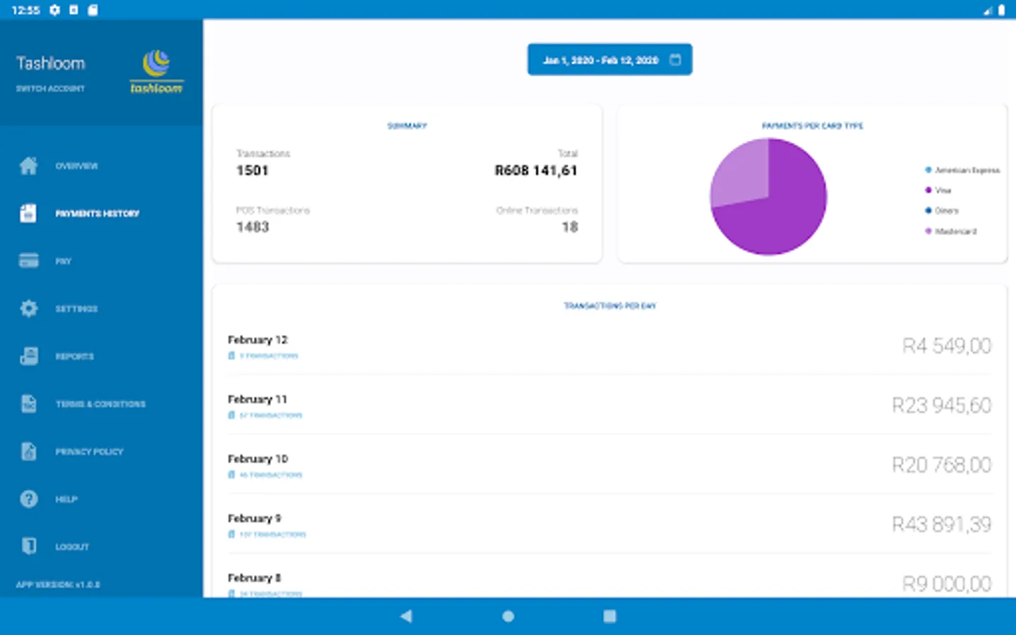 The walletdoc business app allows registered businesses to view live transactions across the following channels: