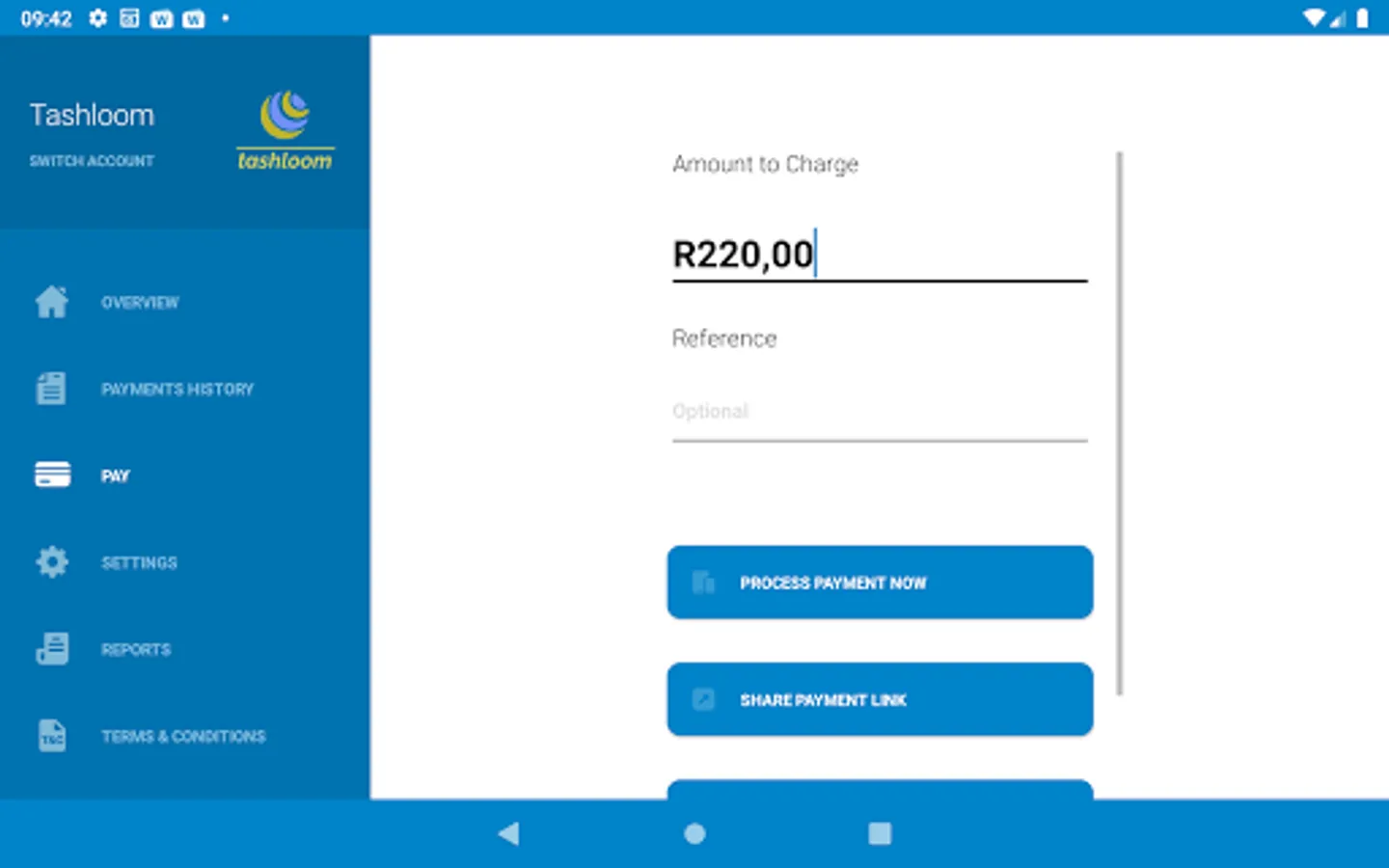 • Process transactions live via the app