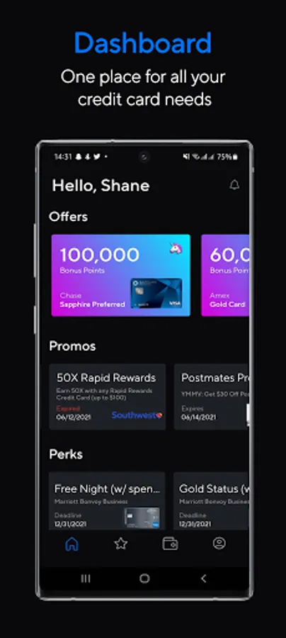 - Credit card rewards management: Track your upcoming credits, perks, and the very best credit card offers.
