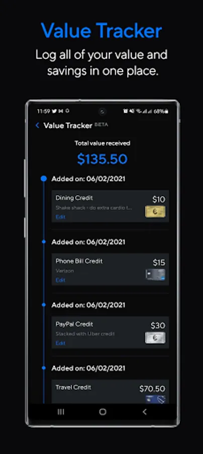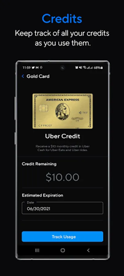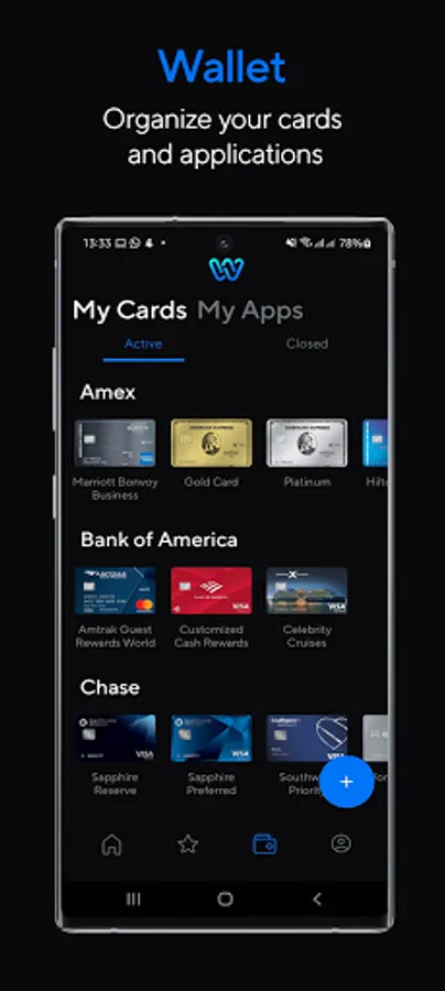 - Notifications: Get alerts when you're compliant with rules like Chase 5/24 and receive reminders to use your credits and perks.