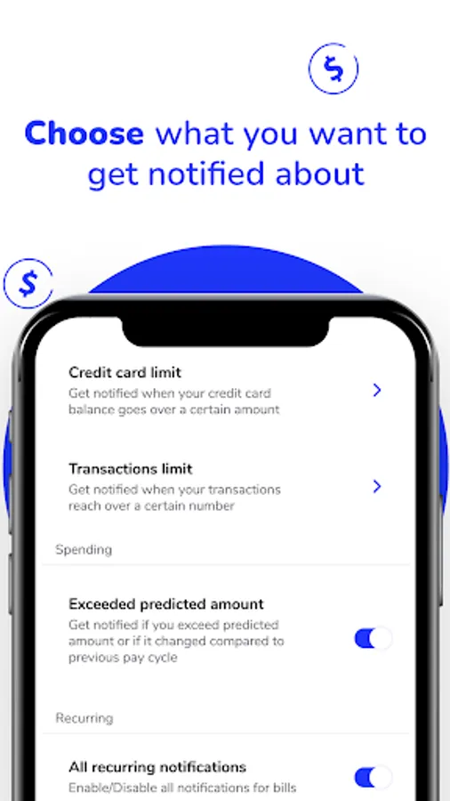 We predict your expenses in each income cycle, so that you can identify areas for improvement ahead of time. You can choose categories you would like to cut back on or spend less on and let us monitor them for you. It helps significantly in avoiding falling off track in your financial life.