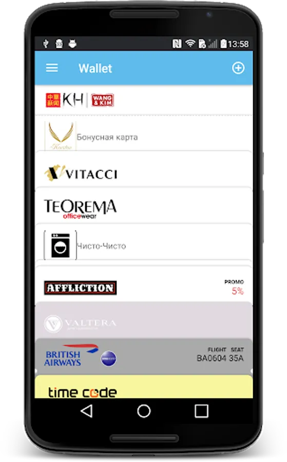 With Wallet you can enjoy full benefits of electronic cards, passes, tickets, coupons and boarding passes on Android. Designed to fully support iOS Passbook and Wallet standards, now you can manage all your passes in your phone.