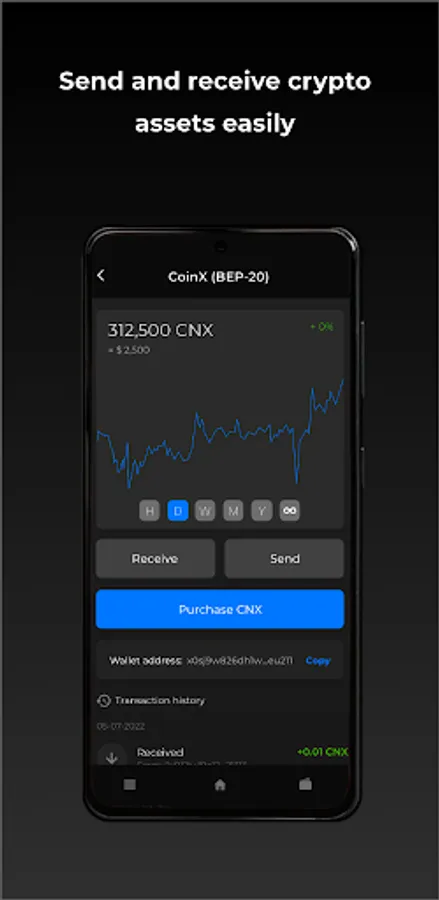 WalletX is the official crypto wallet of CNX Network. You can send, receive and store BNB and many other cryptocurrencies and digital assets safely and securely with the WalletX mobile app.