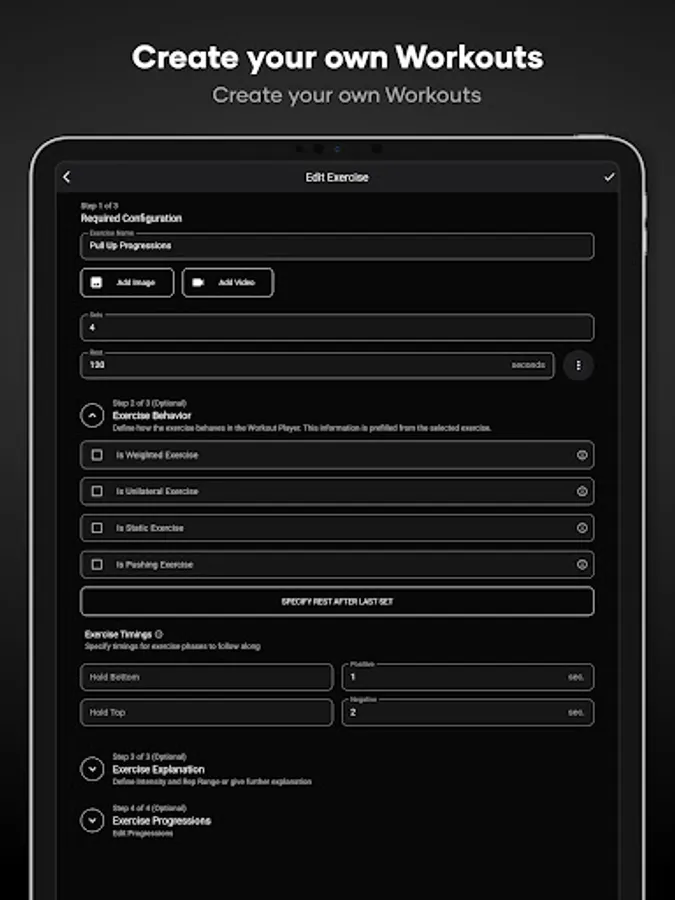A comprehensive method to create or edit workouts