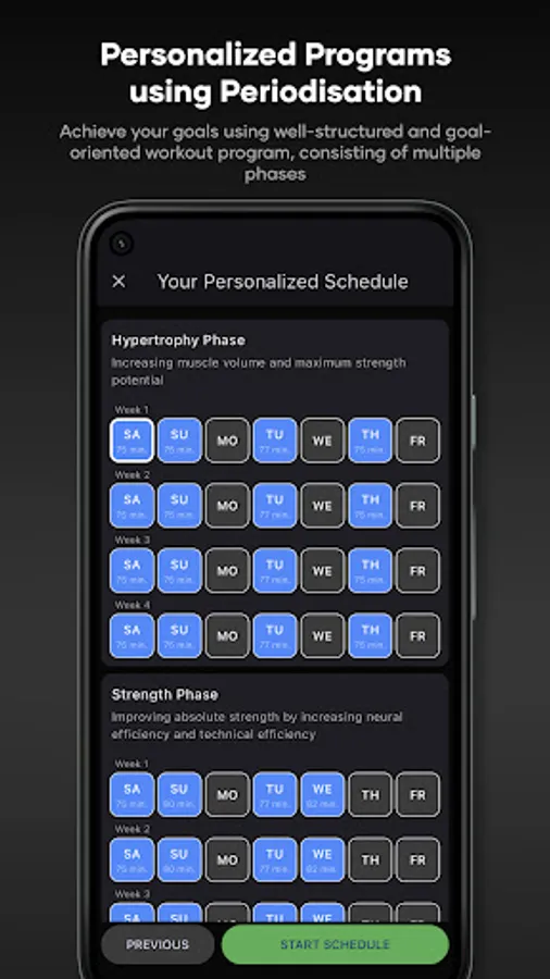 -> Tailored to your personal schedule: Define how often and when you want to work out.