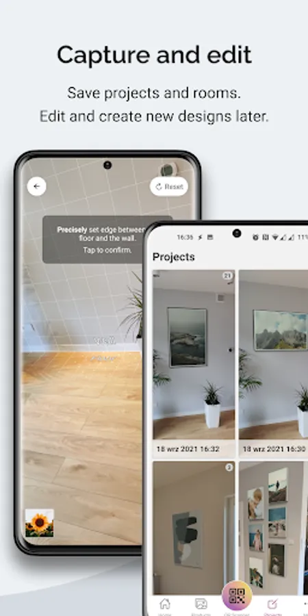 Feel like being creative? Design yourself beautiful compositions, collages or photo galleries directly on your wall in real world sizes without using any extra tools. Then share your creations with friends and family.