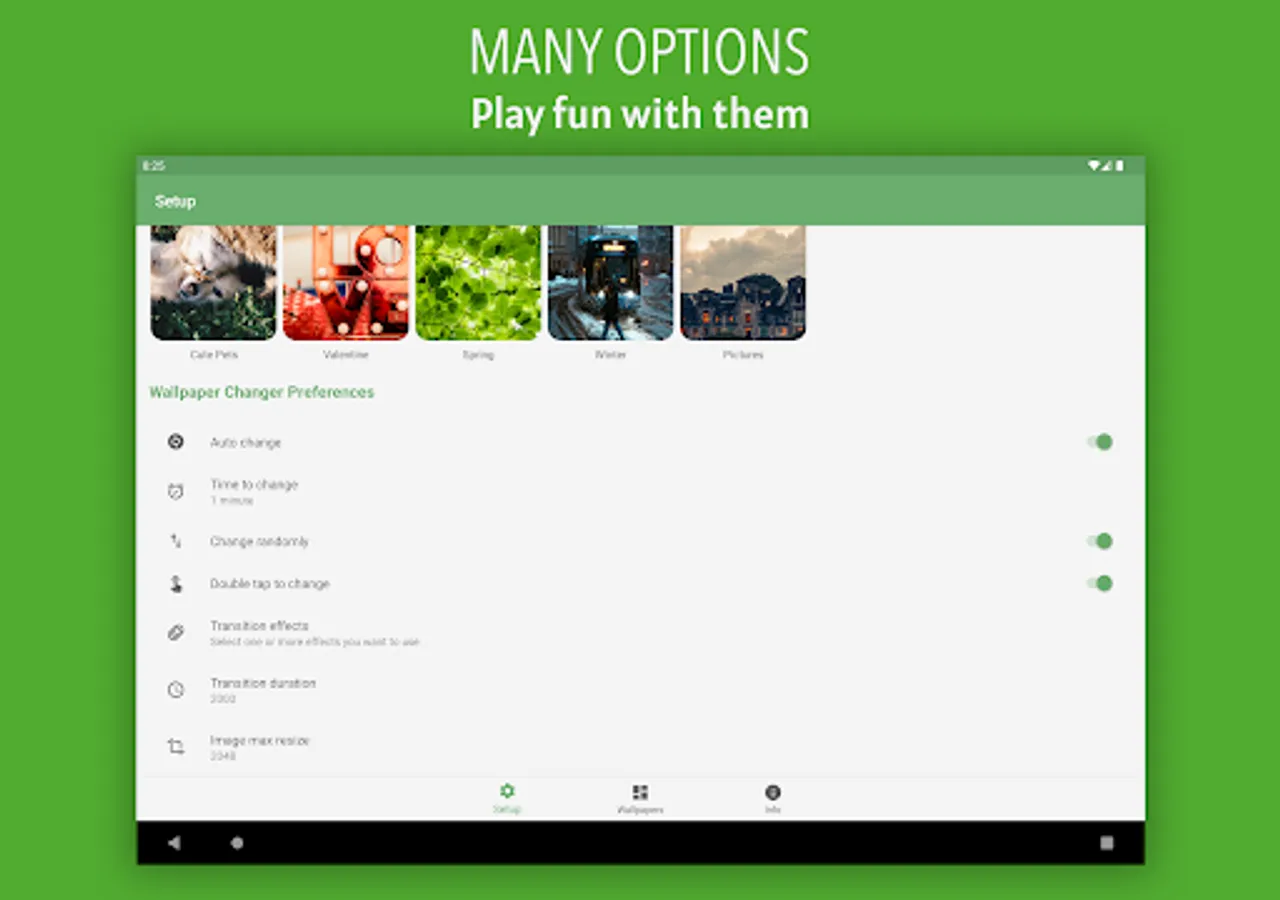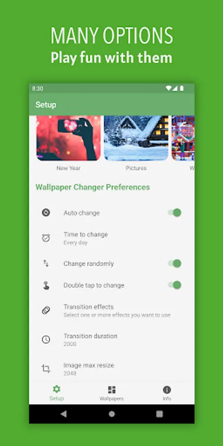 ❤️🔥 Create a gallery of wallpapers then the app will be a Wallpaper Changer Automatic from Gallery you created for you.