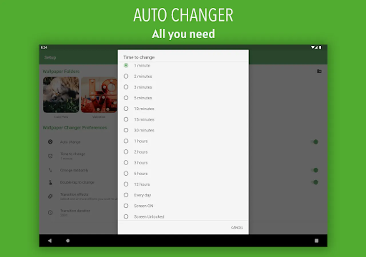 🌟 Auto change wallpaper by Time interval, by Screen On or Unlocked, by every day at specific time