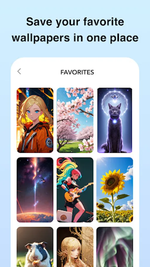 Favorite and Share: You can bookmark your favorite wallpapers and share your personalized phone screen with your friends. Whether it's showing off your creativity on social media or sending wallpapers to friends, you can easily express your personal style.