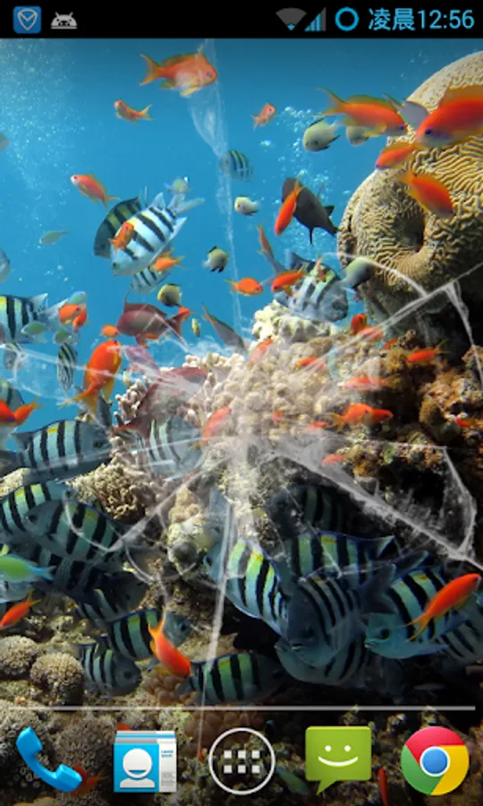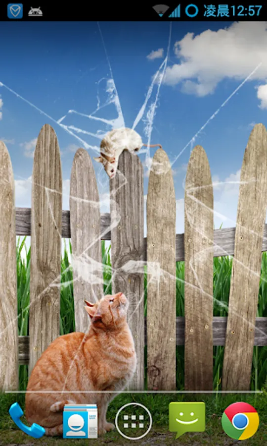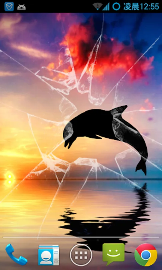 And you will find that the broken screen (grass) live wallpaper display several HD picture. The HD pictures include drops, cat, star space, sunset and Dolphins, and the underwater world.