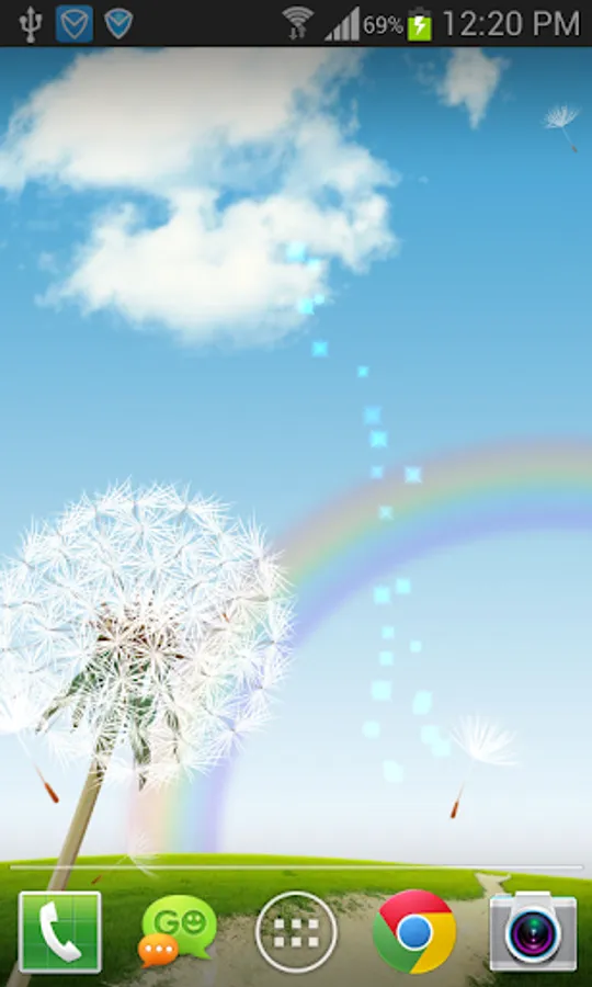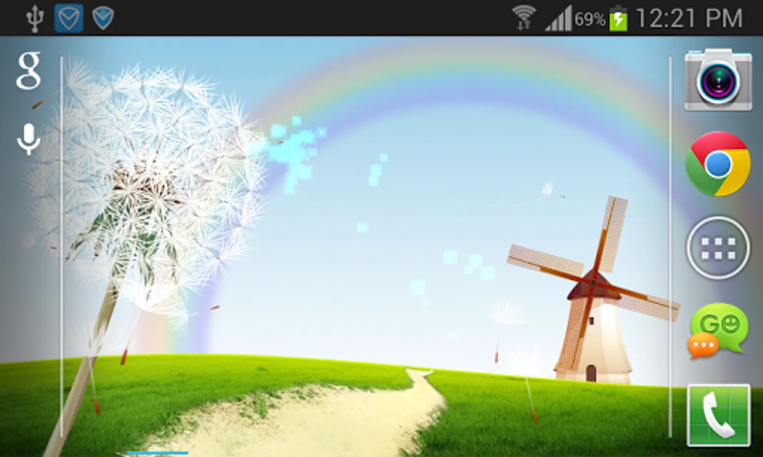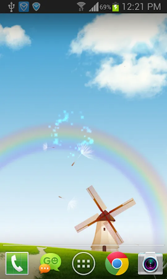 Now comes with new Galaxy S4 wallpaper background! Please watch lovely “flower seeds” float carelessly on your screen! Get this Galaxy S4 Live Wallpaper! In this live wallpaper, you can find some dandelion flying in the sky. And the dandelion ratation in the sky and in you phone screen. And in the greengrass, you can find a big dandelion and a windmill. The windmill ratation by the wind. And a lovely sun display in the wallpaper. And when you click the phone scrren, you will find that the colorful particle display in the phone scrren. And the particle would follow you untill you leave the screen. Oh, it is a good day. And hope you have a good day. Hope you like it. Thanks.