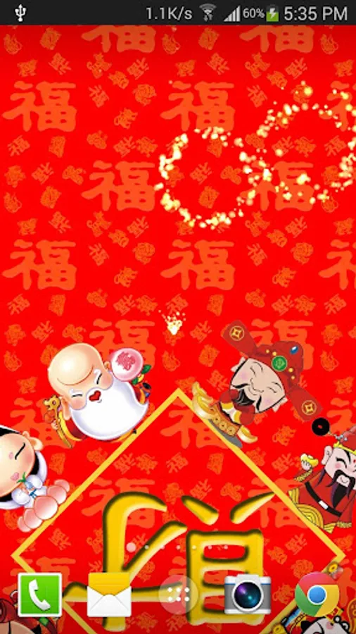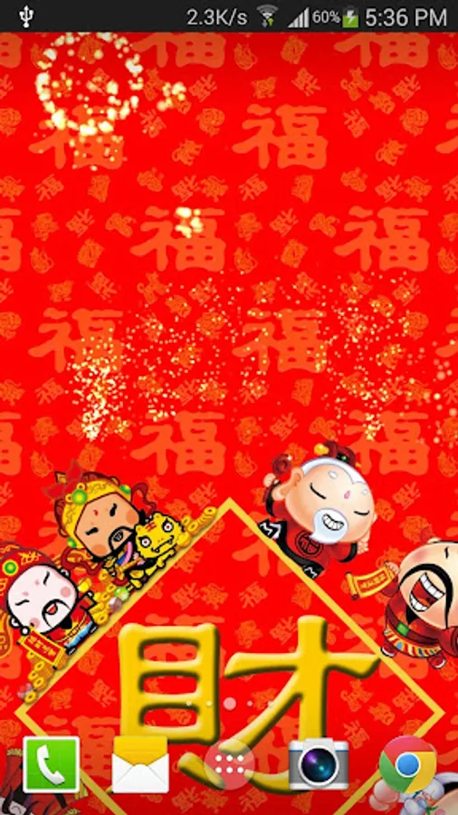 Bright and beautiful red background, which means coming in the new year. And the Zodiac say New Year to everyone. Happy New Year 2019. This is a free live wallpaper on New Year. You can enjoy the New Year just in your phone screen. You will see Eight Chinese God of wealth posted with the blessings of the New Year, beautiful fireworks. And the good blessing display in the wallpaper. Hope you will lucky come in the 2014 new year. And the biggest interesting of the wallpaper is that the Eight Chinese God of wealth can rotation by themselves or you can slide the phone screen that the wallpaper can be rotation.