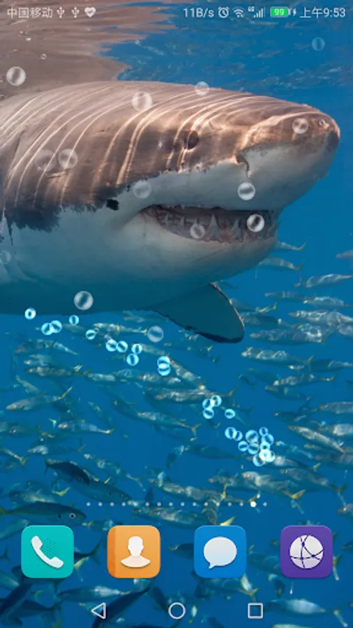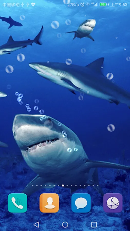 Shark is very cool, amazing. In Shark Reef Live Wallpaper you see sharks, streamlined and ferocious predators, swimming in deep blue waters.