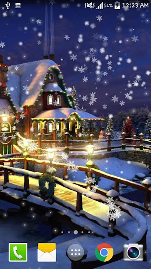 In that live wallpaper, you would see the beautiful snow scenery HD photos and the beautiful white snowflake. The wallpaper is so beautiful. And I am very like this one. Just enjoy this free wallpaper. And Merry Christmas! And Happy new year! And I hope you will like it. Thanks a lot.
