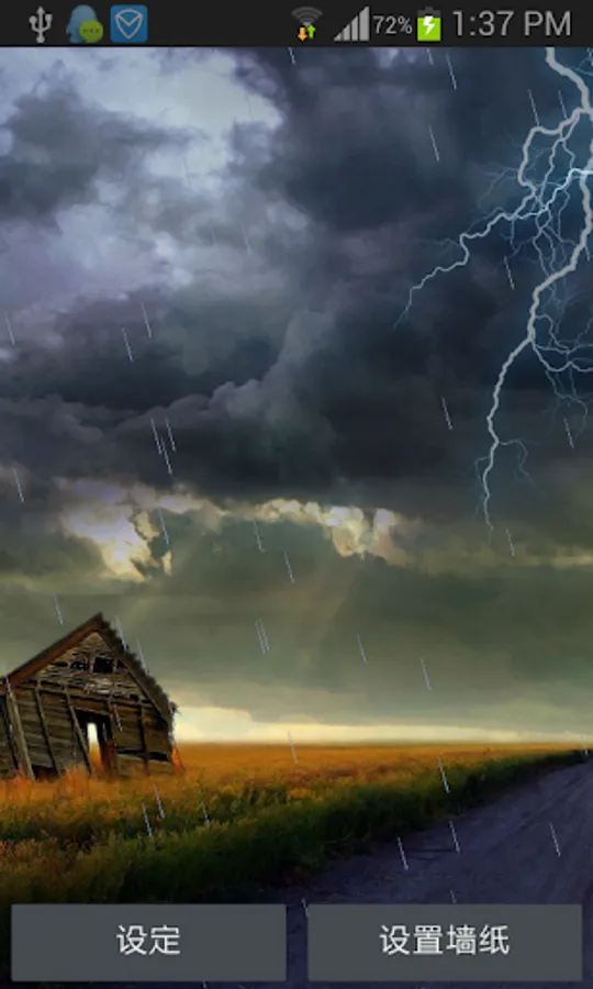 This is a free application. It is about the prairie lightning live wallpaper. For this wallpaper, you can enjoy the amazing thunderstorm display in your phone screen. And it would also display the rain. And when you click the phone screen, you can notice that the thunderstorm would appear. How a true live wallpaper. Hope you will like it. Thanks.