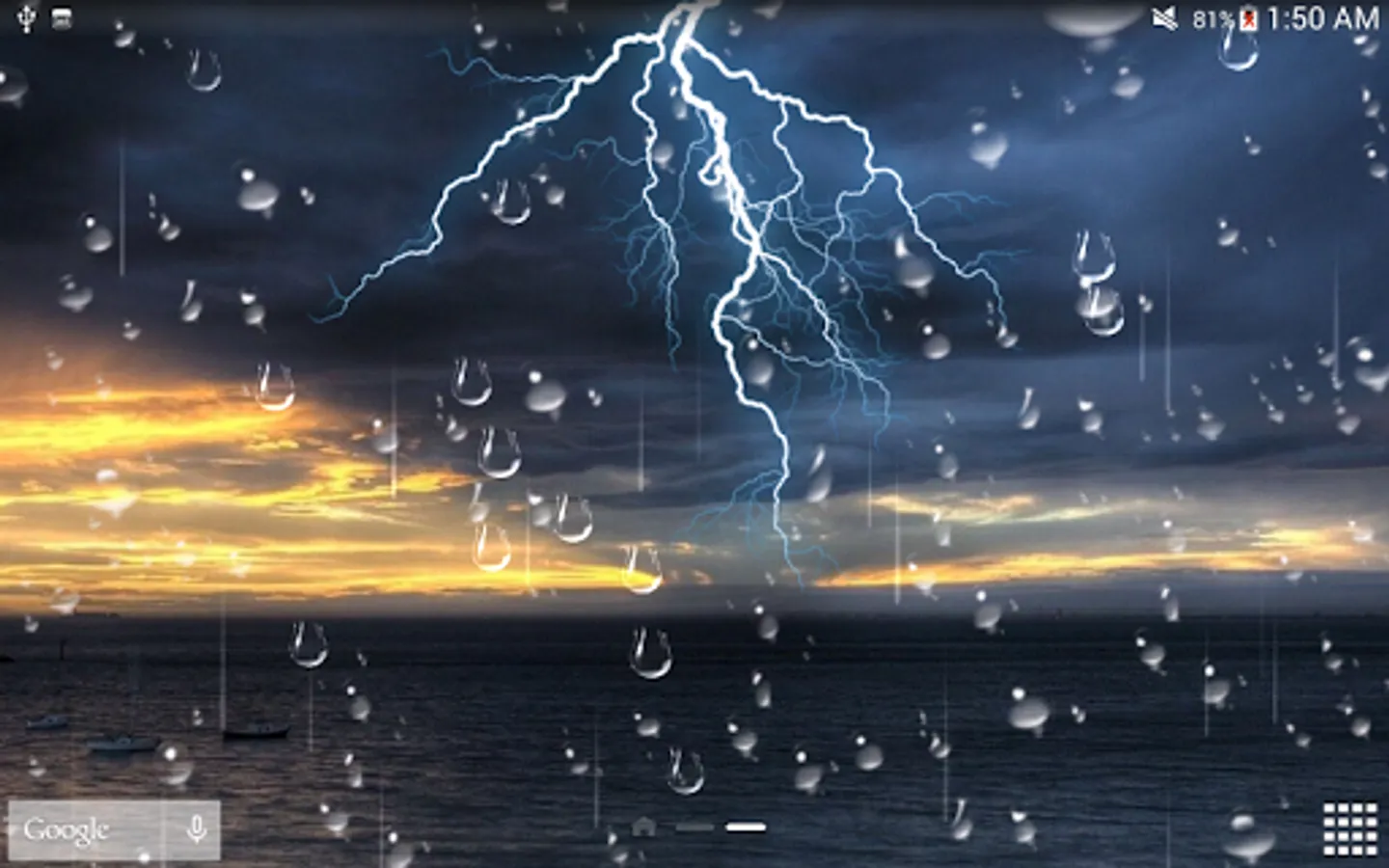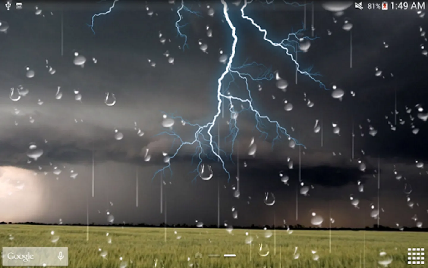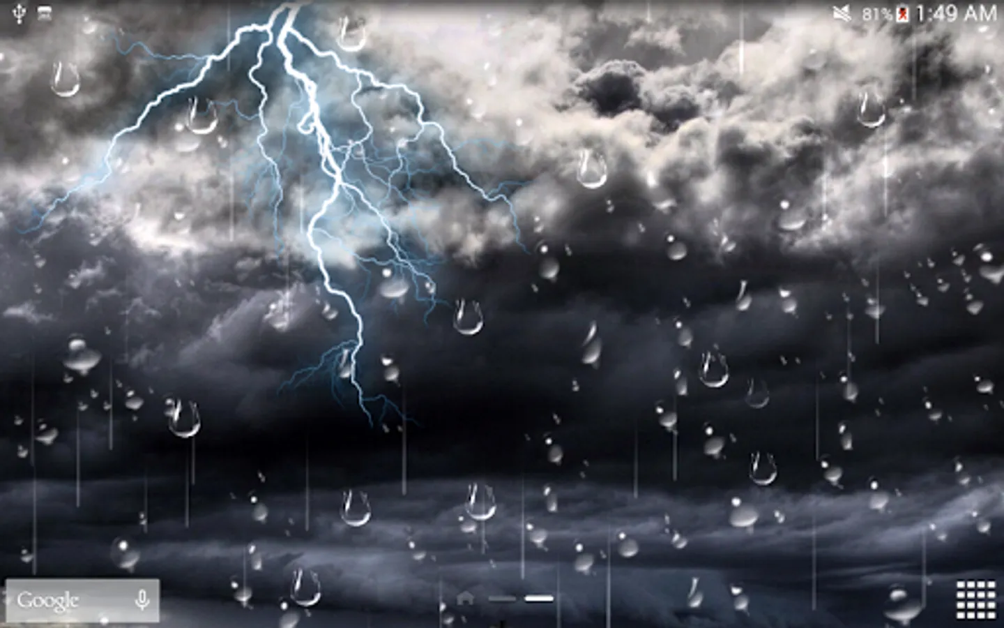 This is a free application. For this wallpaper, you can enjoy the amazing thunderstorm display in your phone screen. And it would also display the rain. And when you click the phone screen, you can notice that the thunderstorm would appear. And amazing that you can find the app would be play the voice of the thunderstorm and the sound of rain. And you would find the rain would drop on your phone screen. How a true live wallpaper. Hope you will like it. Thanks.
