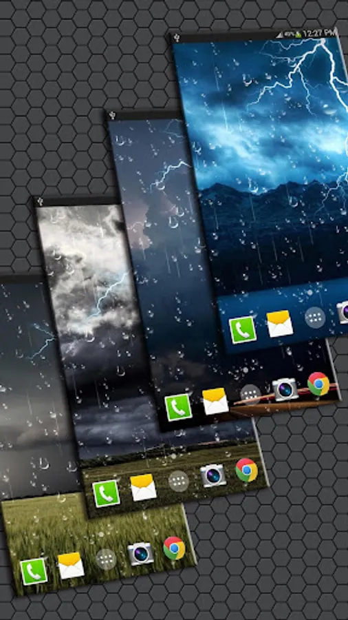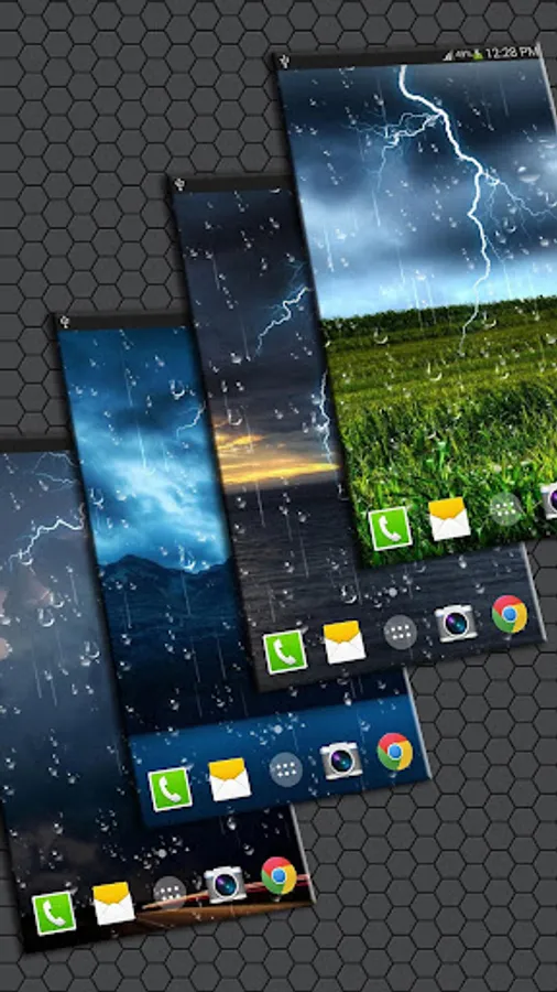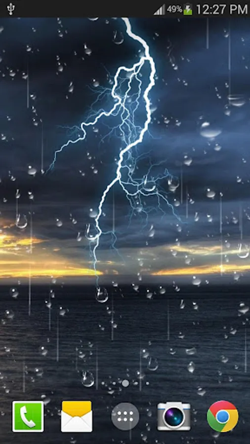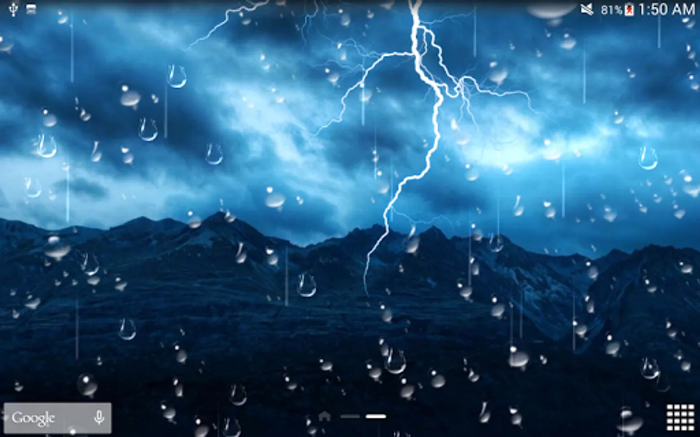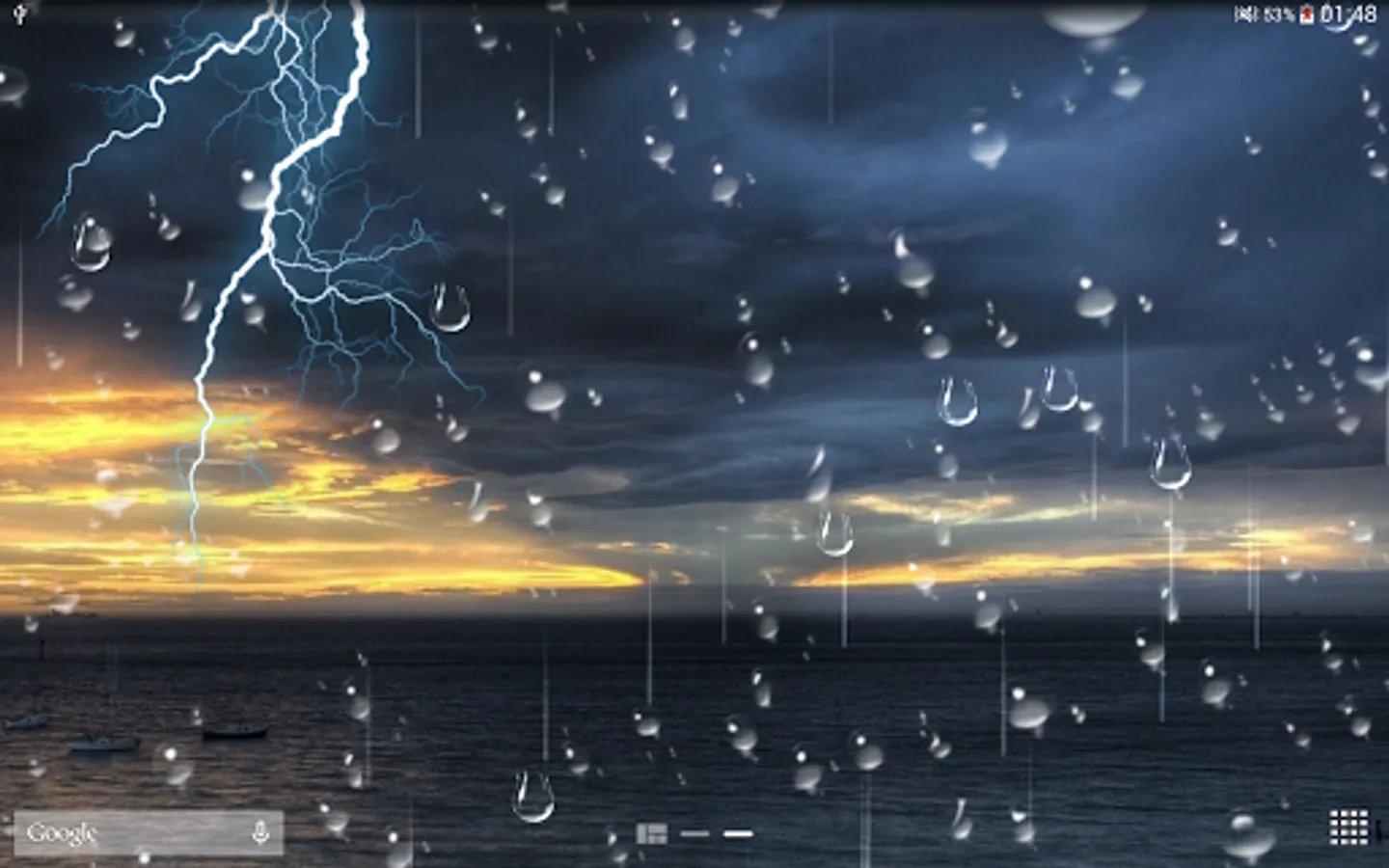 This is a free application. For this wallpaper, you can enjoy the amazing thunderstorm display in your phone screen. And it would also display the rain. And when you click the phone screen, you can notice that the thunderstorm would appear. And amazing that you can find the app would be play the voice of the thunderstorm and the sound of rain. And you would find the rain would drop on your phone screen. How a true live wallpaper. Hope you will like it. Thanks.