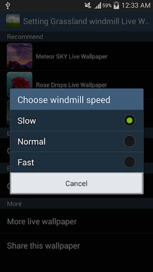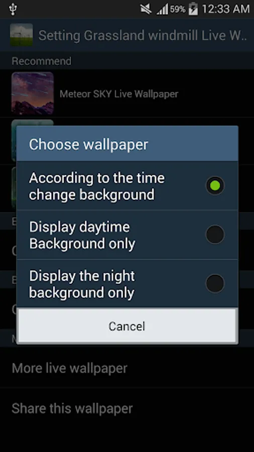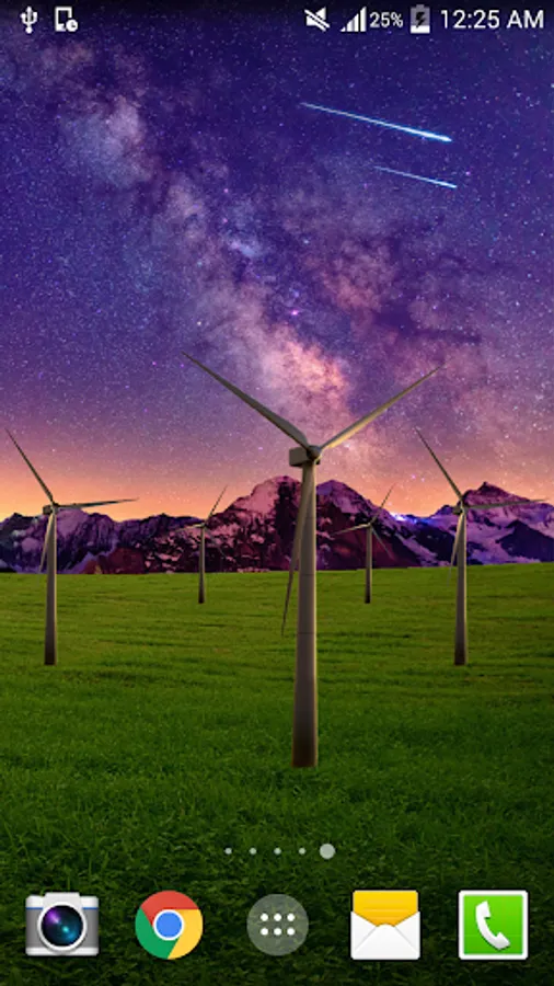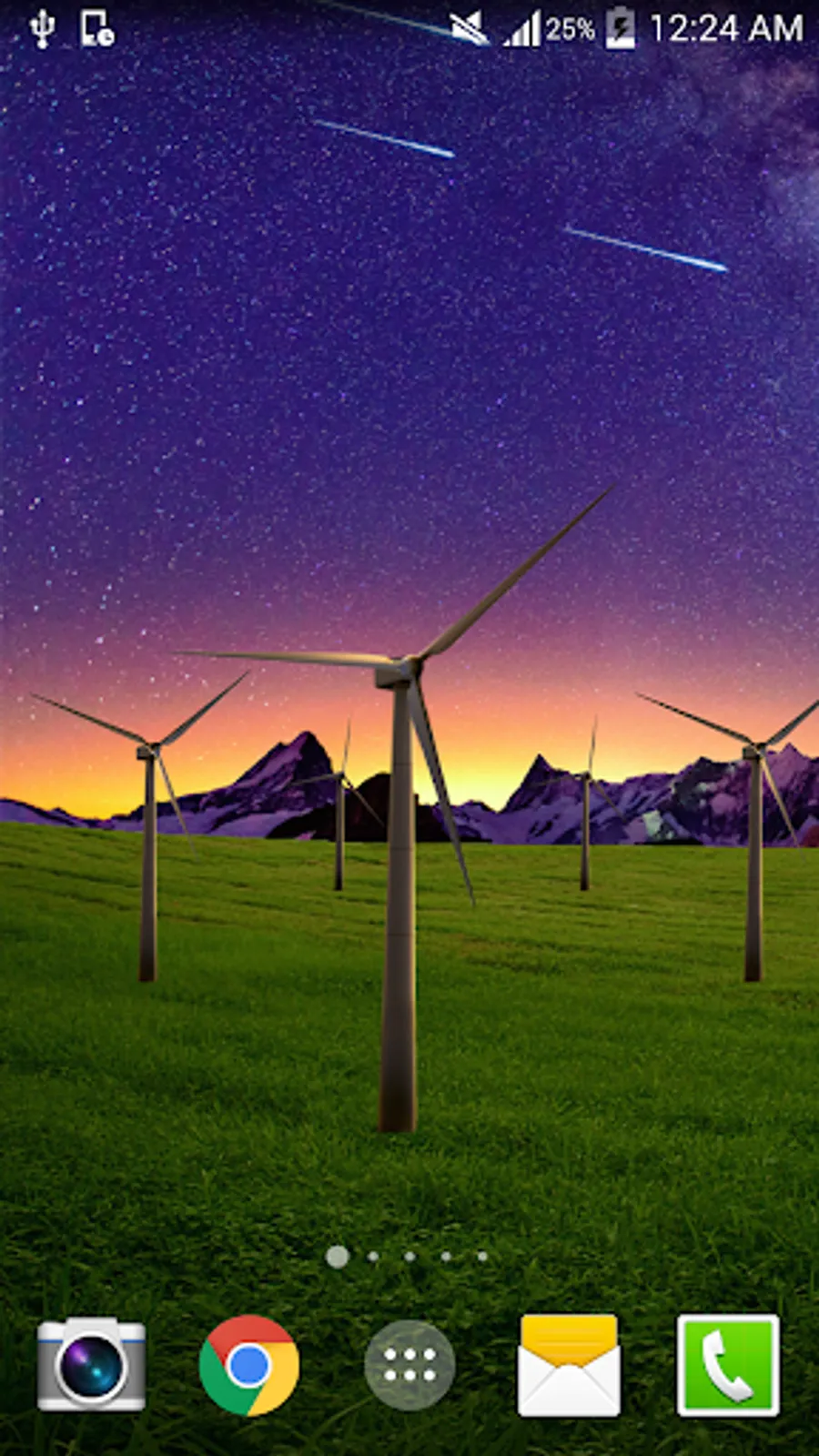 This is a free live wallpaper, which is about the windmill. And they are display in the Grassland and in your phone screen. You will find that the wallpaper dispaly some windmills and the gree grassland, and the blue sky of the day. And if the wallpaper at night, it would display the night, the stars, and the meteors. All these display make the wallpaper display so beautiful. The windmill would display in your phone. Download it. Hope you will like it. Thanks.