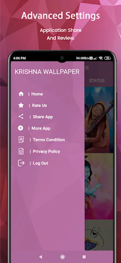 * Easy to use and Beautiful selection of Lord Krishna wallpapers.