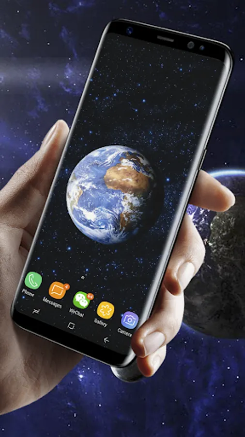 This is about the Earth live wallpaper. And the earth is 3D. The 3D image of the Earth, comets and stars is definitely the most realistic one.
