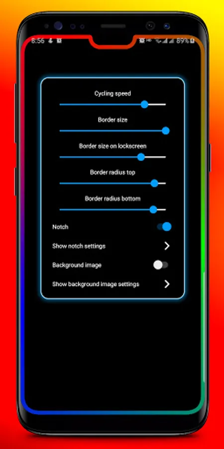 Edge Lighting offers many settings which allow you adjusting the edge lighting color, width and change wallpaper: