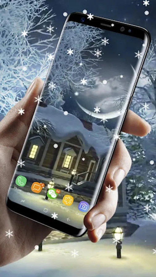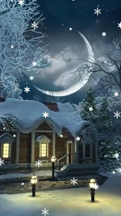 This is a live wallpaper which about the Winter Village. Snow, Moon, Snow tree, Christmas tree, village, Snowman. Yeah, it is winter and it is Christmas.