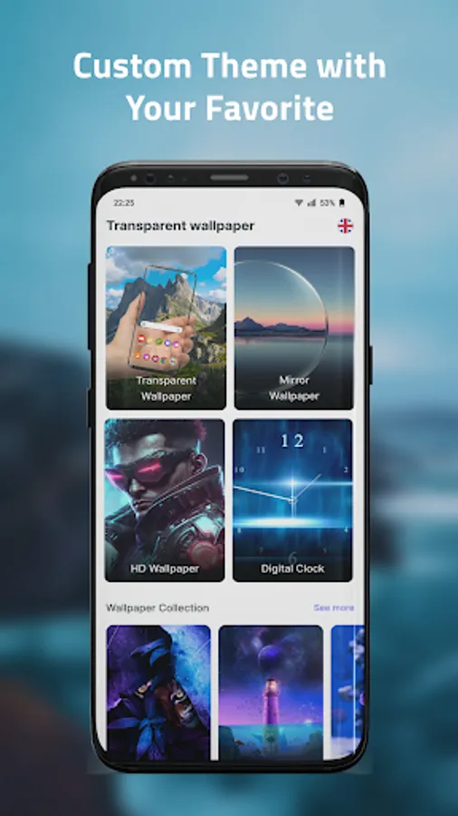 But that's not all - the app also features a digital clock, custom themes, and transparent and mirror wallpapers. You can choose from a variety of themes to match your mood or style, and the background transparent and mirror wallpapers add a unique and innovative touch to your device.