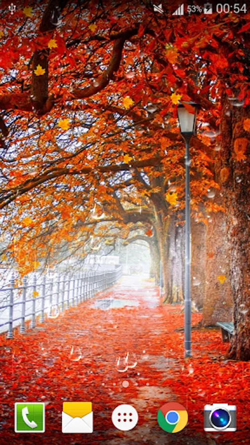 Maple Droplets live wallpaper with beautiful floating drops.Which give great for Autumn! This is a live wallpaper with interactive capabilities, a beautiful autumn forest and raining.