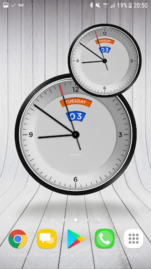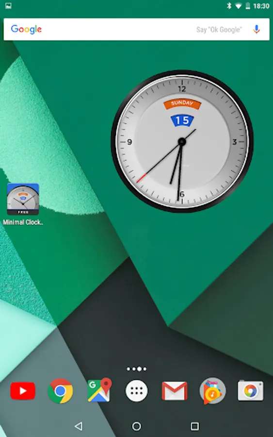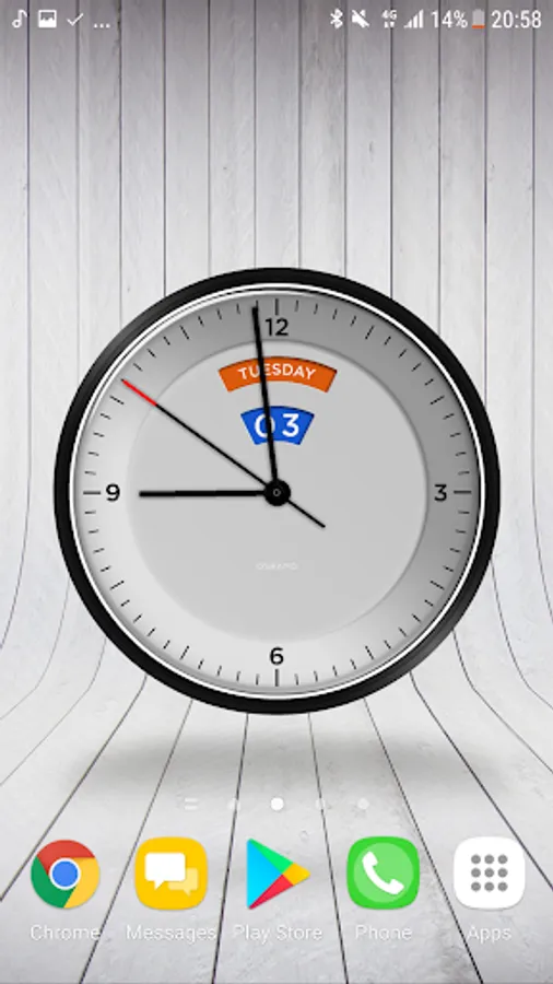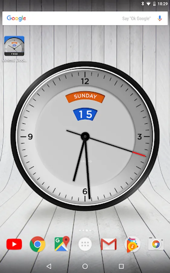 A Free Minimal Analog Clock Live Wallpaper and Widget with 'Seconds' hand and 'Day' and 'Date' indicators. The Clock is beautifully designed to be minimal, clear and realistic and is set to a curved backdrop to create the illusion of depth on screen.