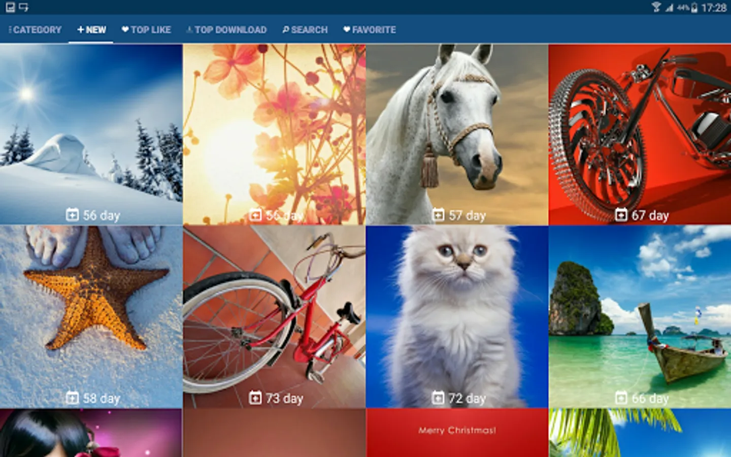 - Free wallpapers in 50 categories such as Christmas, animals, sports.