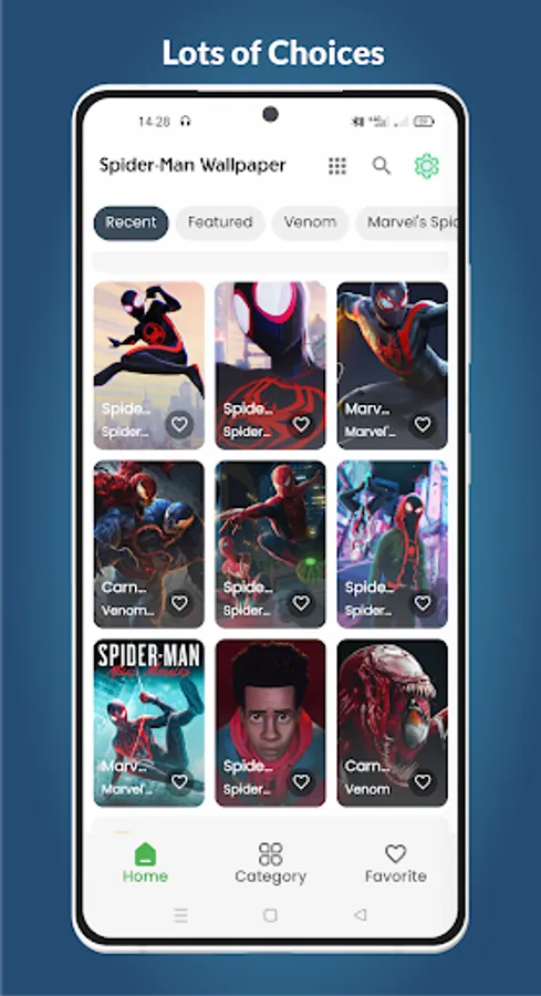 This application displays a large collection of superhero wallpapers, one of which is venom, with very high-quality wallpapers you can find your favorite superhero here
