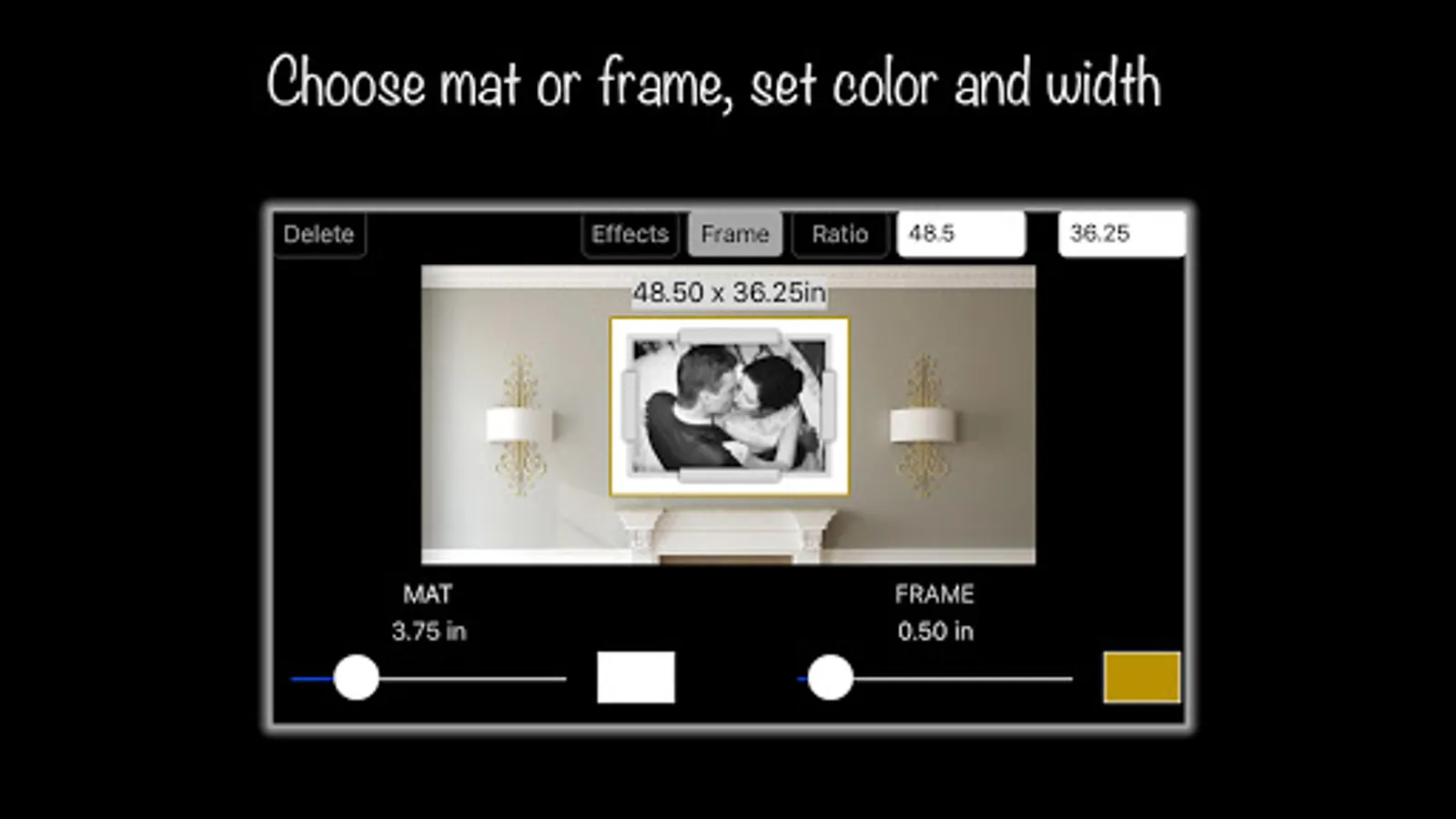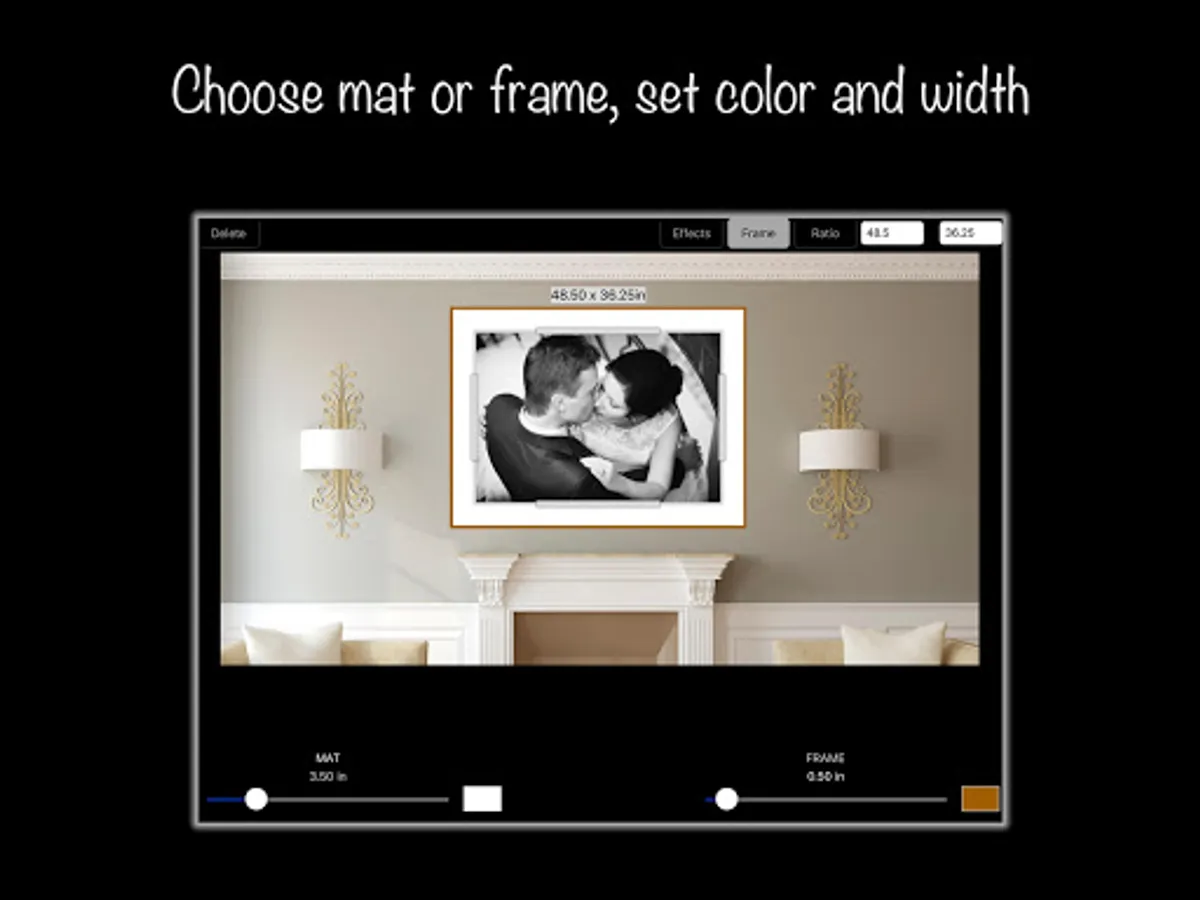 • Create mat and frame around your art or picture. Add adjustable shadow.