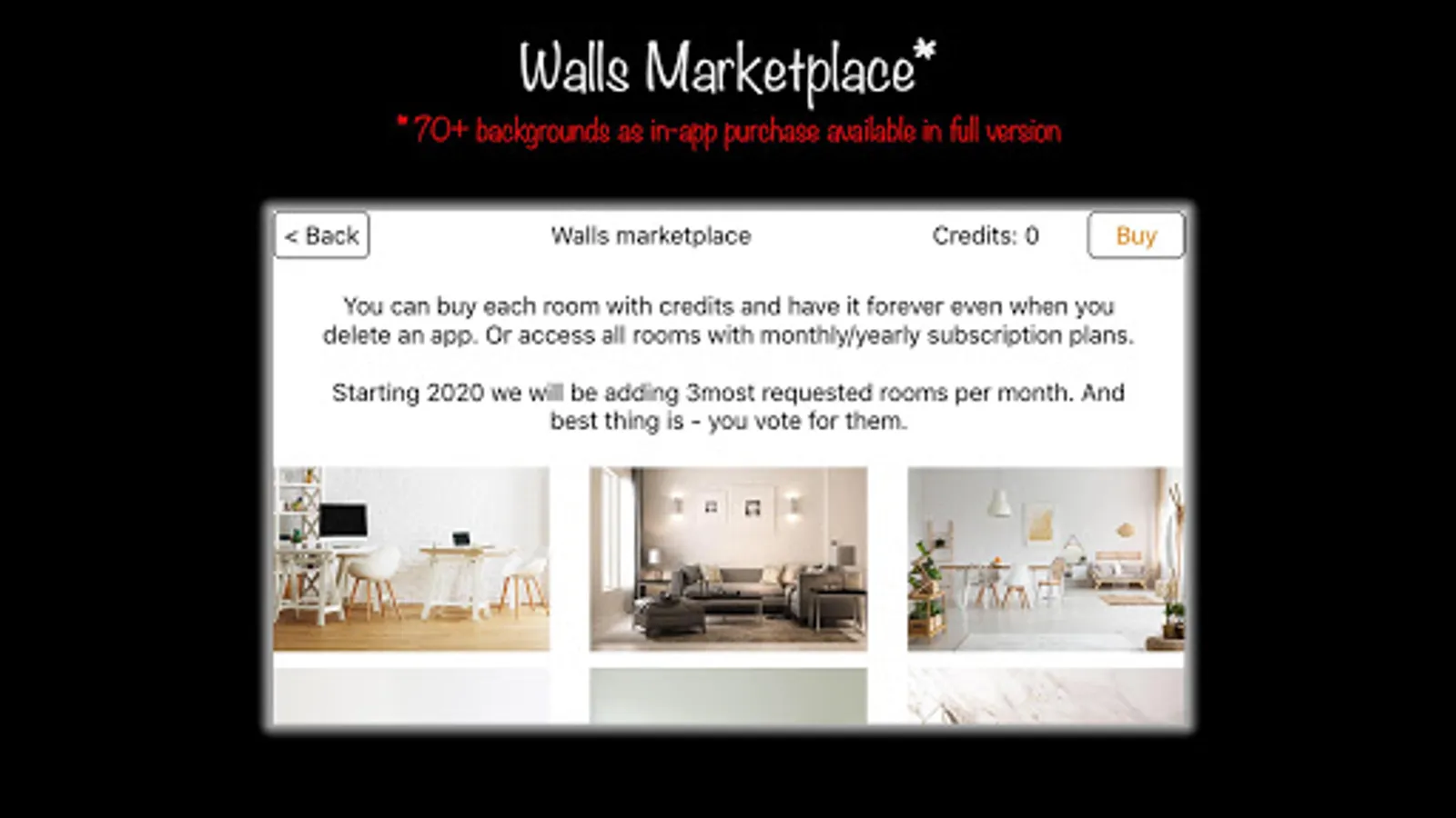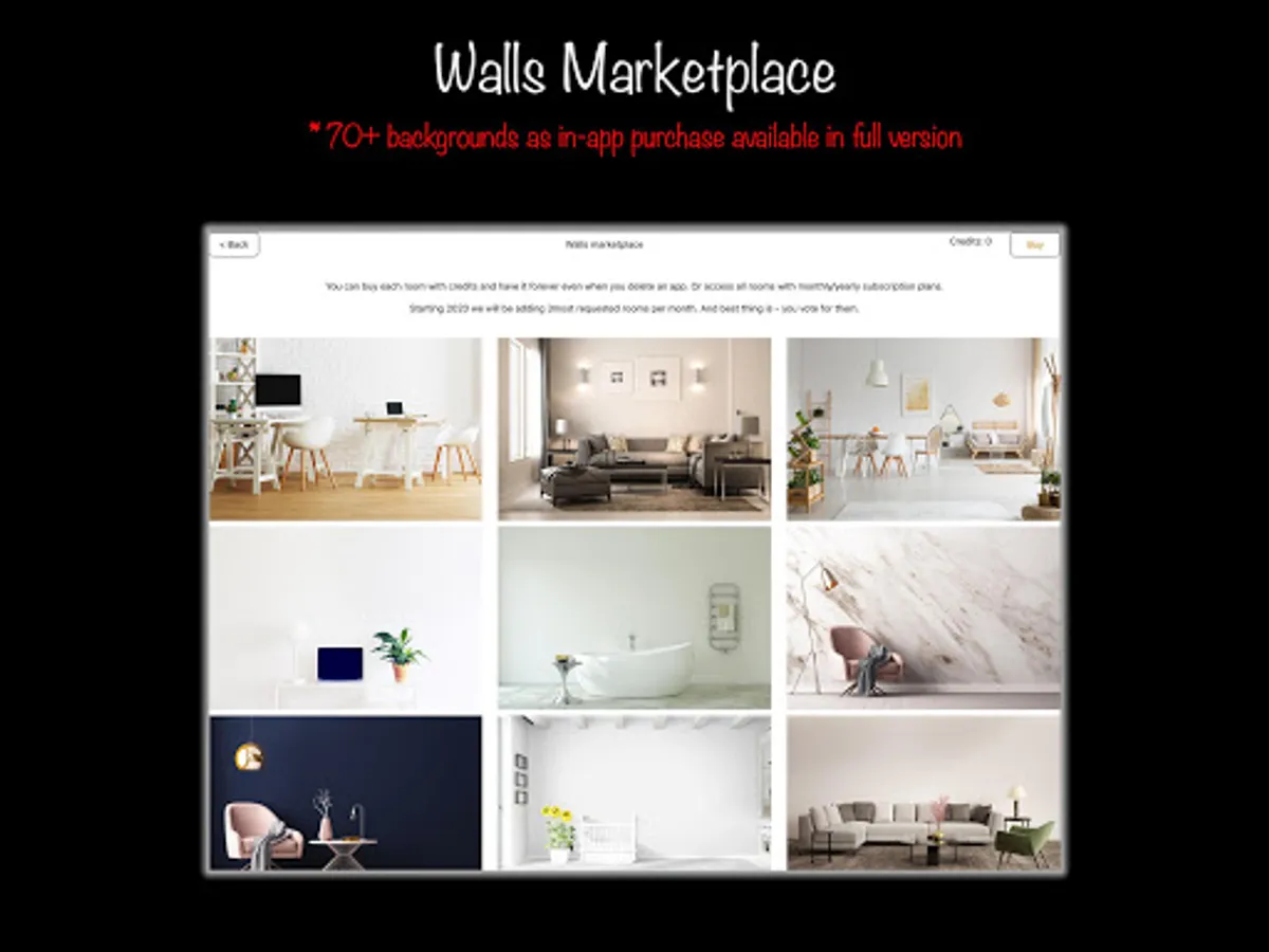 • Walls Marketplace - use 180+ walls as in app purchase.