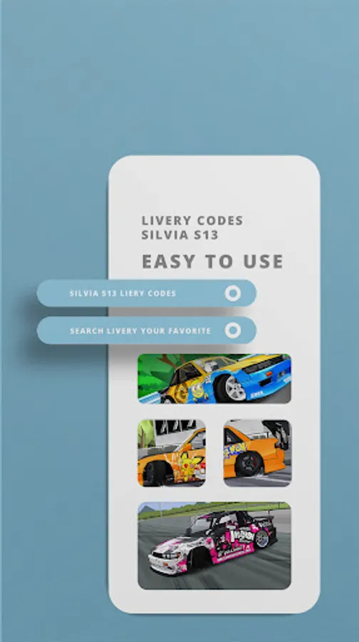 Skin Codes Frlagend Silvia s13 is a collection of Livery Codes to beautify the Sillvia s13 car in the Fr Lagend skin game which is currently popular. This application contains a collection of Silvia S13 car skin codes.