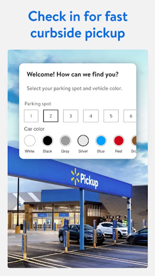 Check in with the Walmart app when you’re on your way to the store and we’ll bring your order out to you when it’s ready for pickup.