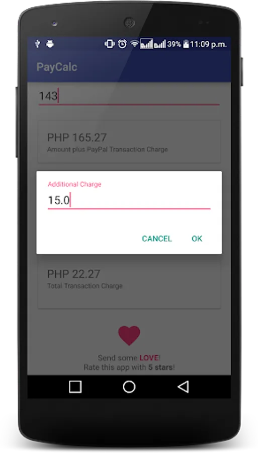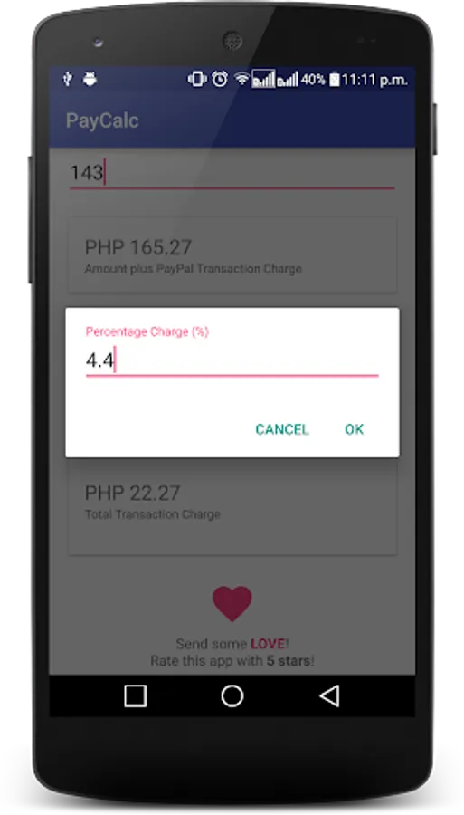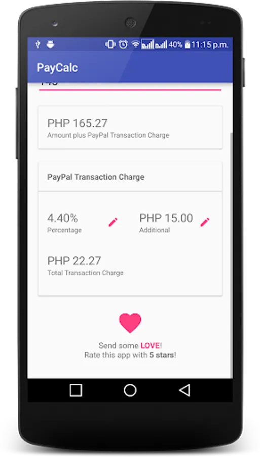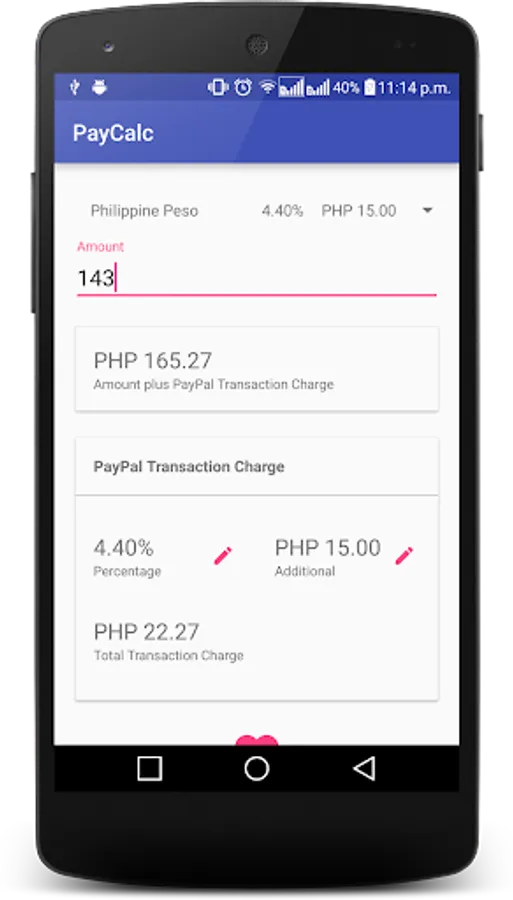 Since certain services will charge for a certain percentage and amount for every transaction made, PayCalc gives you the calculated amount of the amount you wish to receive or send, plus the transaction charge, so that the sender or receiver will have the exact or expected amount.