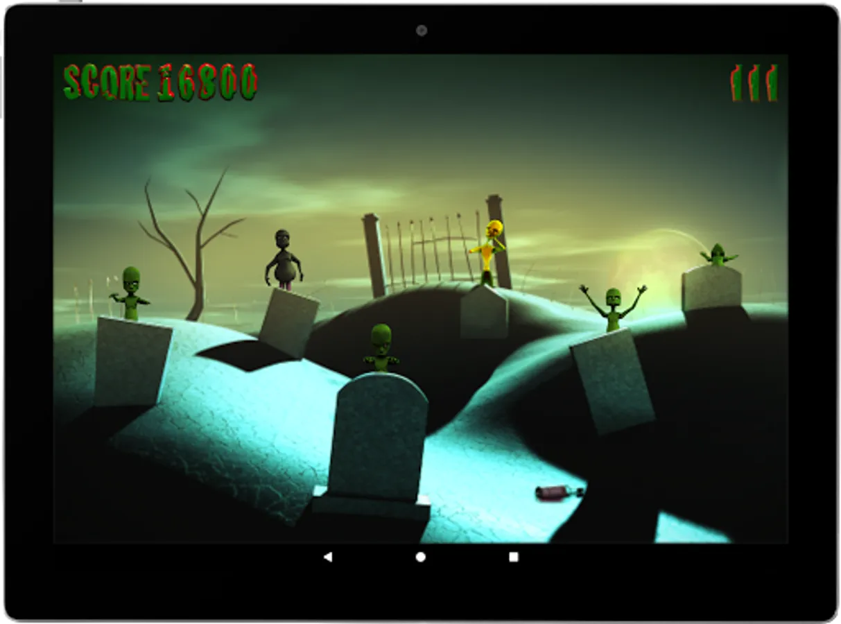 However be attentive as you tap it fast. Like in many shooting games you lose a level if you fail your zombie defense... thrice. So, smash zombies and play as long as you can in this cartoon zombie survival.