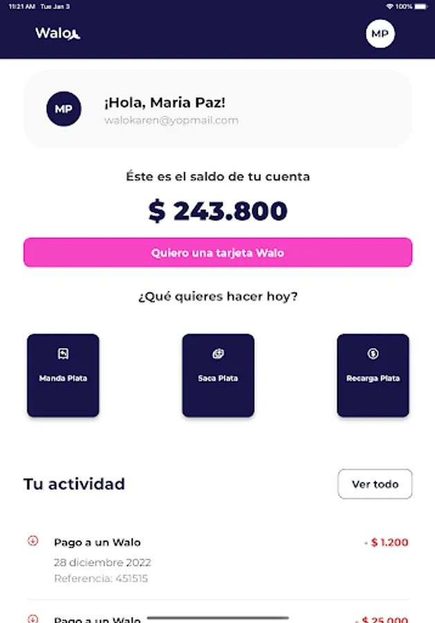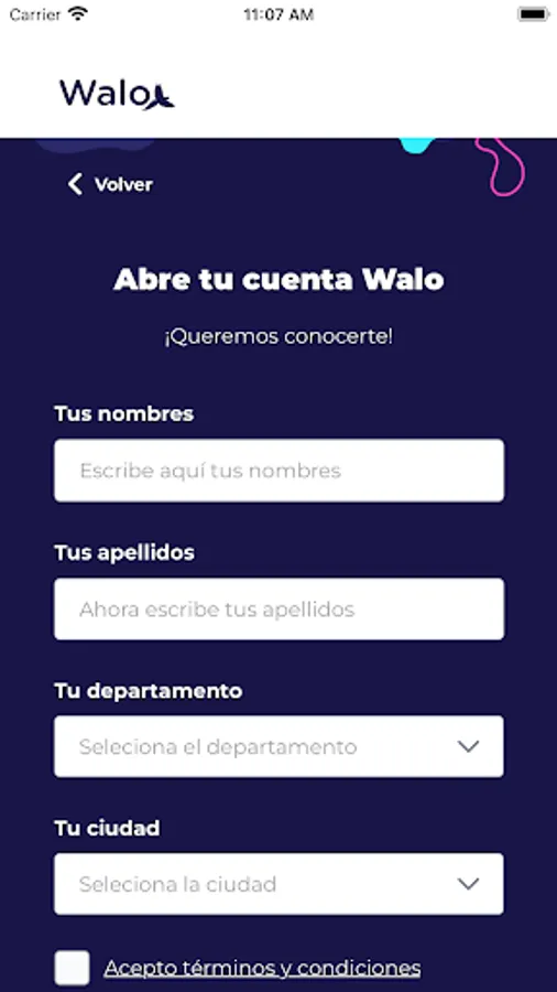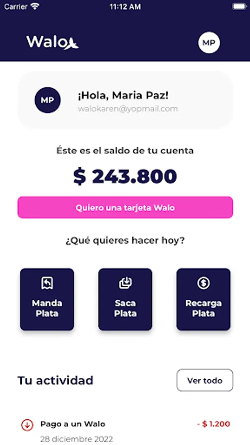 Walo is the first transactional Fintech with its own network and physical points in Colombia, where you can send, transfer and withdraw for free at Walo physical points or at more than 3,200 Grupo Aval ATMs nationwide. In addition, we give you a Walo/Visa Debit card at no cost.
