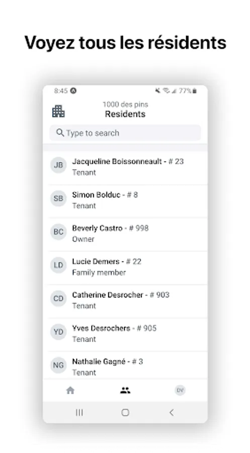 Building specific contacts at the touch of your fingertips. Filter, access or update resident profiles seamlessly.
