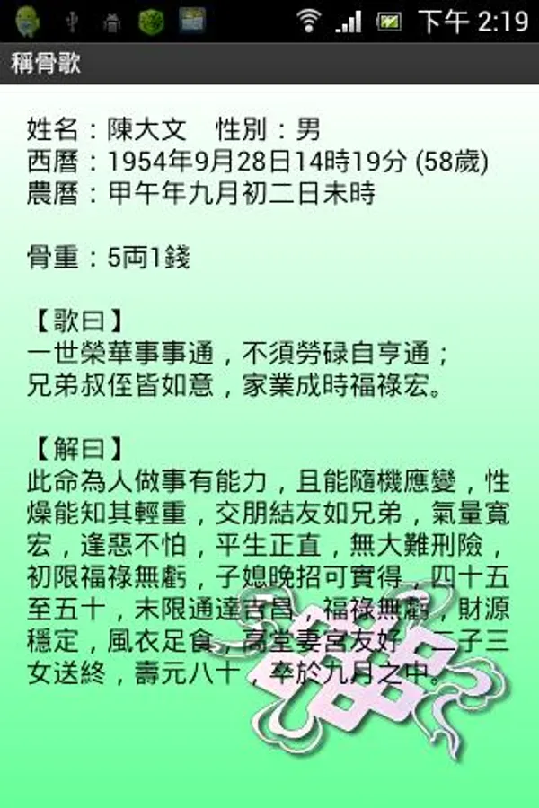 Said bone song famous Tang Dynasty astrological forecast home 袁天罡 said bone fortune teller predicted. This approach with a four-poster fortune-telling, to determine a person's life, good and bad fortune, honor ups and downs, and a high rate of accuracy, but also easy to learn and use.