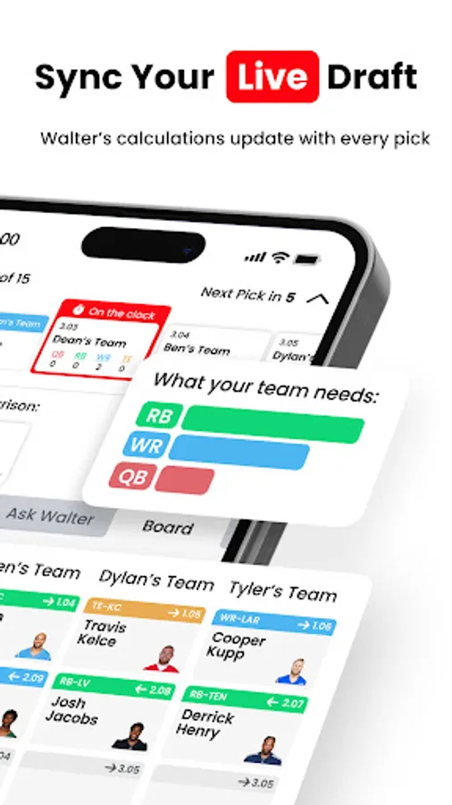 Get real-time, pick-by-pick insights during your LIVE fantasy draft based on what your team needs.