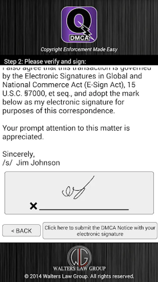 - Execute the DMCA Notice on your touch screen, to capture your e-signature