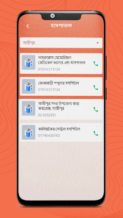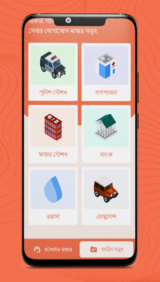 We provide emergency contact numbers of district wise .Hospital, Police Station, RAB, Ambulance services, Fire Station, Blood Banks & more. This emergency contact number app will provide you a collection of Phone or Mobile number and address against 64 Districts .