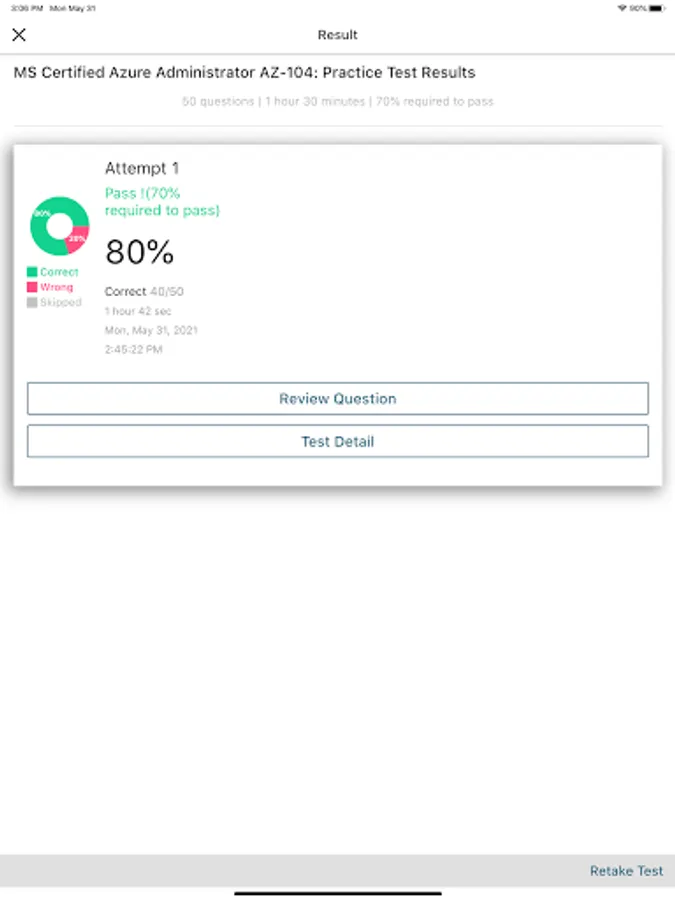 This Azure Administrator AZ-104 Practice Exams App covers EVERYTHING you need to know to pass the exam on your first try. Most of our users reported that our exams covered all questions that were on the actual test. We highly recommend reading the explanations provided after each practice test, not only for the correct choices, but also for the incorrect ones. This will help improve your understanding and increase your score dramatically. By paying attention to these and repeating all the tests until you get 90% or more on each one, you should be able to ace the real exam with confidence.