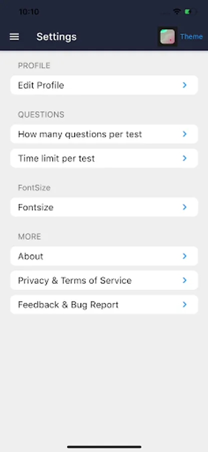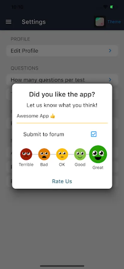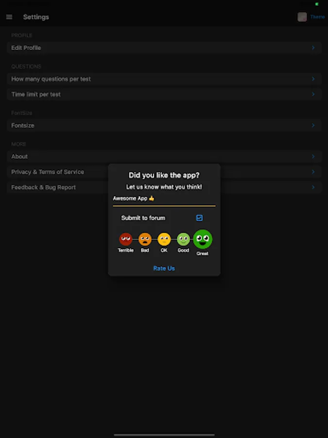 *Themes: Dark Mode and 4 other themes added, so you can take the test in ambient lighting and in the night time.